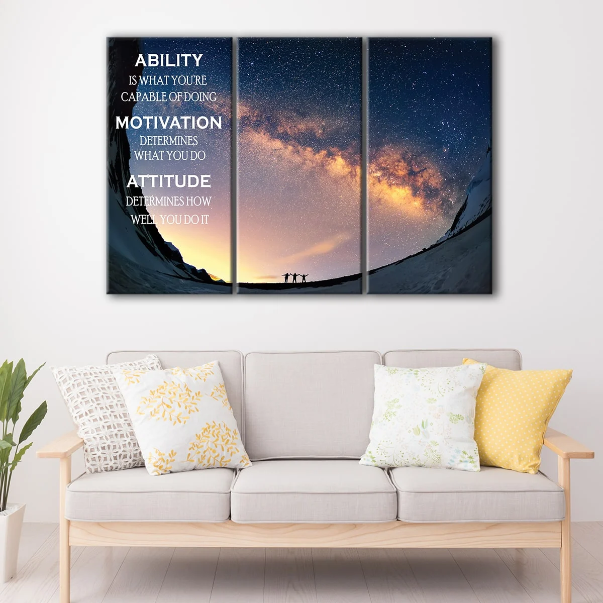 This motivation quote wall art is available in three styles: 1 panel canvas wrap, 3 panels canvas wrap, and a range of oversized canvas prints. Sizes range from small to large, ensuring the perfect fit for any space in your home or office.