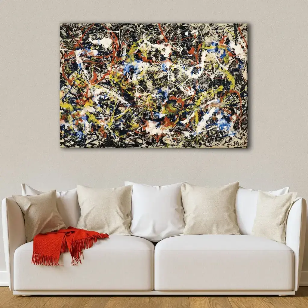 This reproduction canvas art is a faithful representation of a Jackson Pollock masterpiece, expertly crafted for art connoisseurs and enthusiasts alike. The canvas is carefully hand-stretched over 100% natural wood stretcher bars by our skilled craftsmen, ensuring a premium finish.