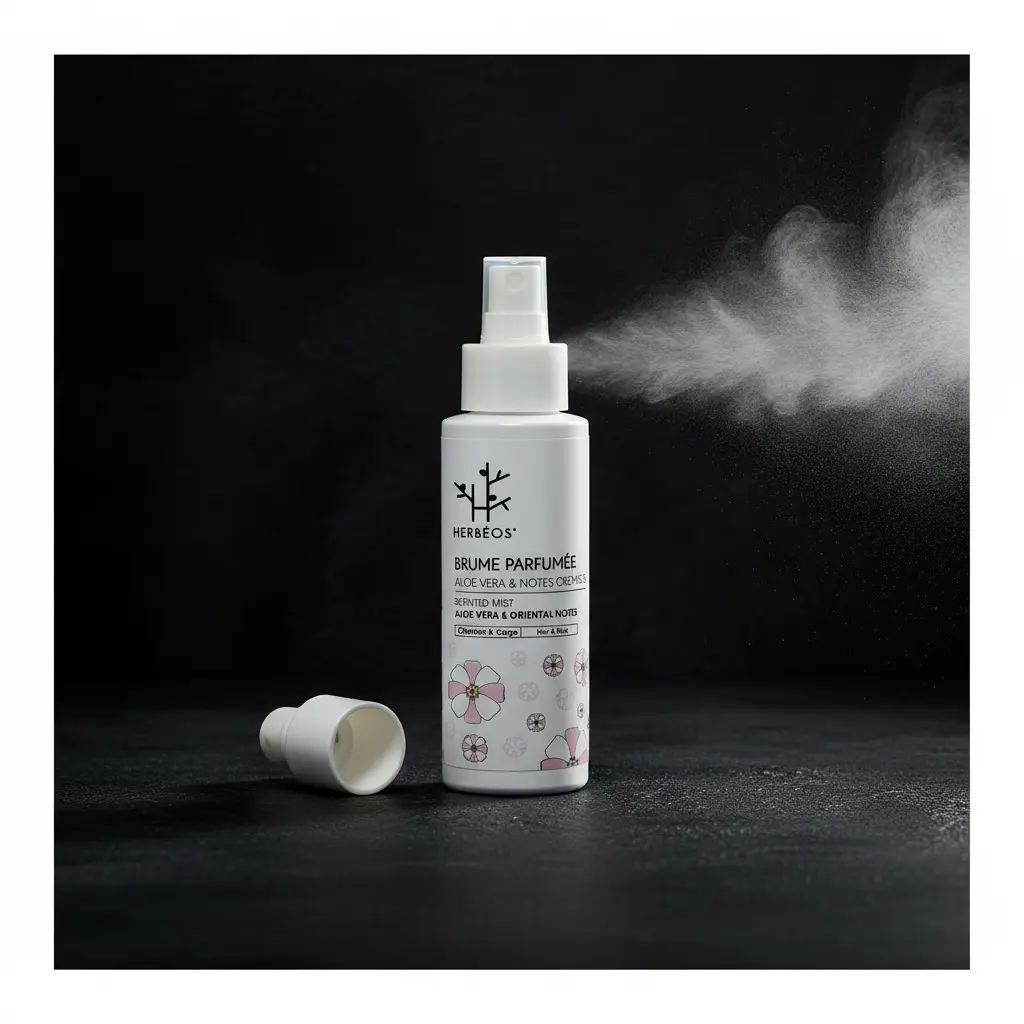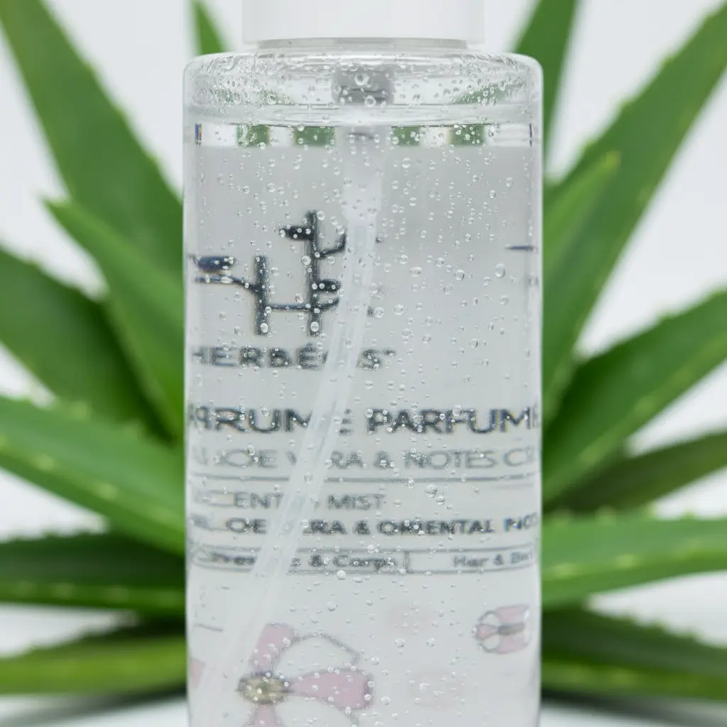 Discover the Aloe Vera & Oriental Notes Scented Mist from Herbeos, a luxurious 100ml body mist designed to refresh and invigorate. This versatile personal care product masterfully blends the soothing freshness of aloe vera with warm, creamy oriental notes, creating a subtle yet captivating fragrance experience. Perfect for daily use, this mist provides an instant boost of freshness and confidence, making it an essential addition to your beauty and wellness routine.
