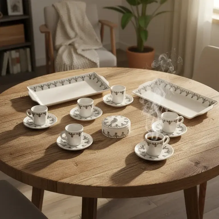Indispensable for black coffee lovers, our Amazigh Coffee Service in traditional pottery creates a relaxed atmosphere faithful to the Berber spirit. This complete 15-piece set transforms your coffee ritual into an authentic cultural experience, perfect for both daily enjoyment and special gatherings with friends and family.