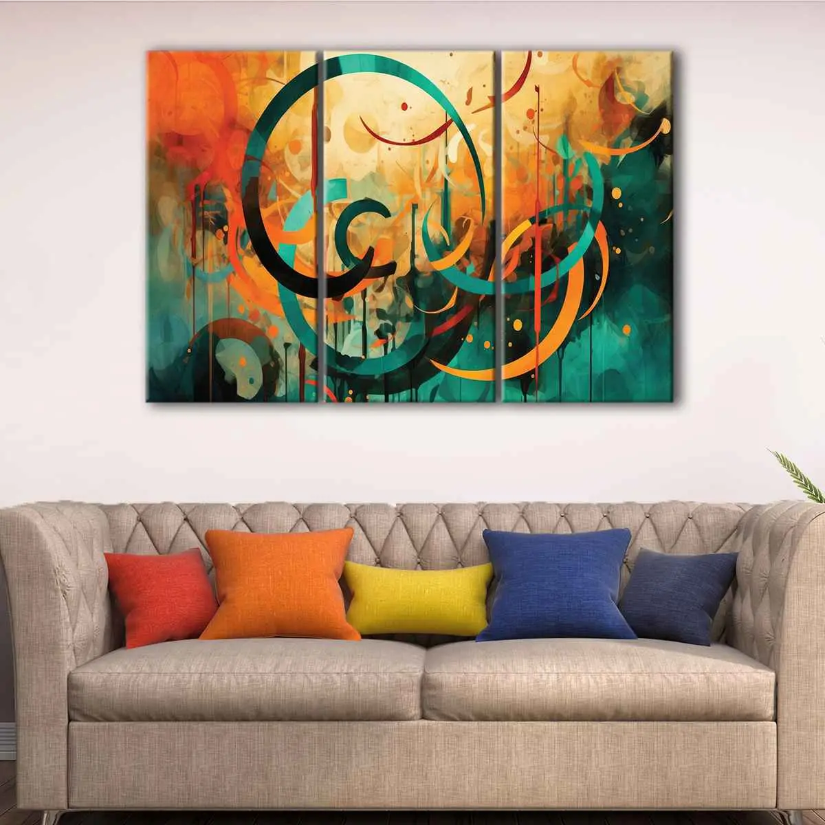 This beautiful Arabic calligraphy artwork is available in 1, 3, or 5 panel configurations, catering to various space requirements. Choose from a range of sizes, from cozy to oversized, to perfectly fit your living room, hallway, kids room, or dining room.