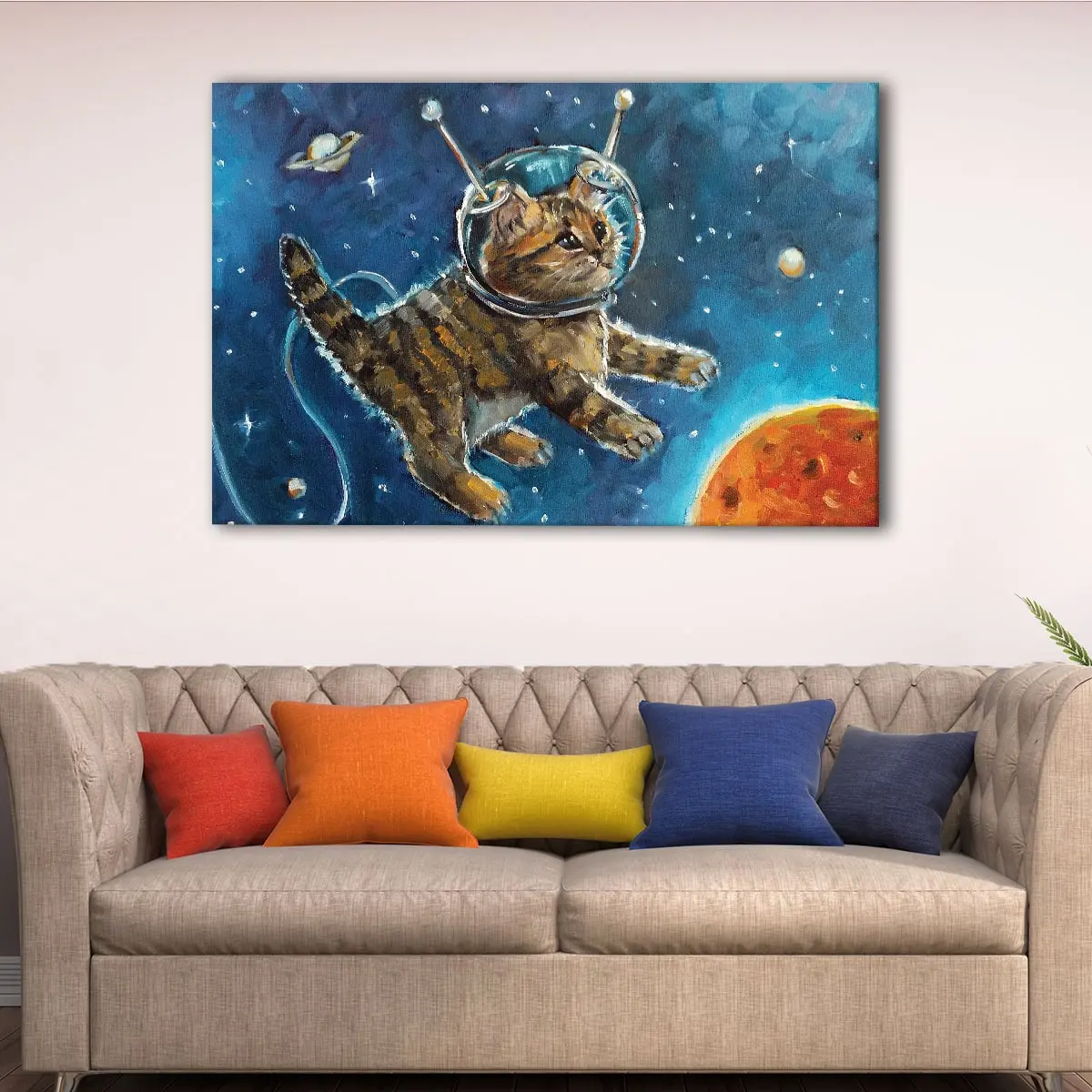 - Spread love and joy in your surroundings with this beautiful astronaut cat canvas wall art