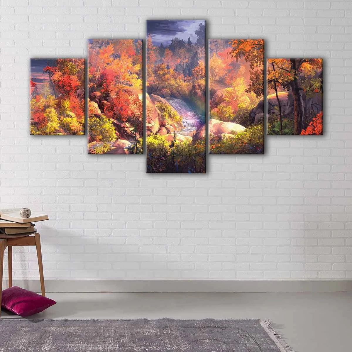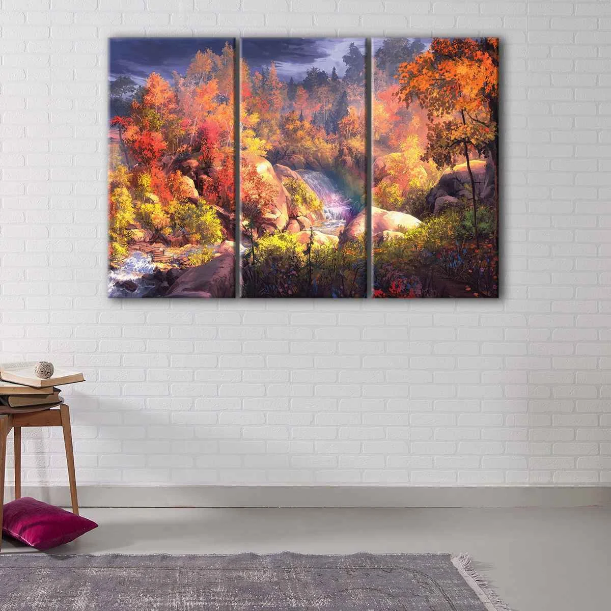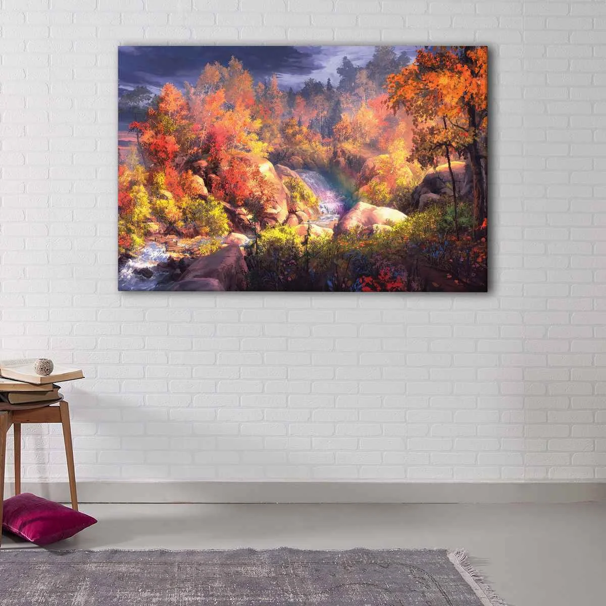 This Autumn Landscape wall art is available in a range of sizes, from small to oversized, ensuring that it will fit seamlessly into any room. Whether it's a living room, hallway, child's room, or dining room, this beautiful canvas art will add warmth and coziness to your space.