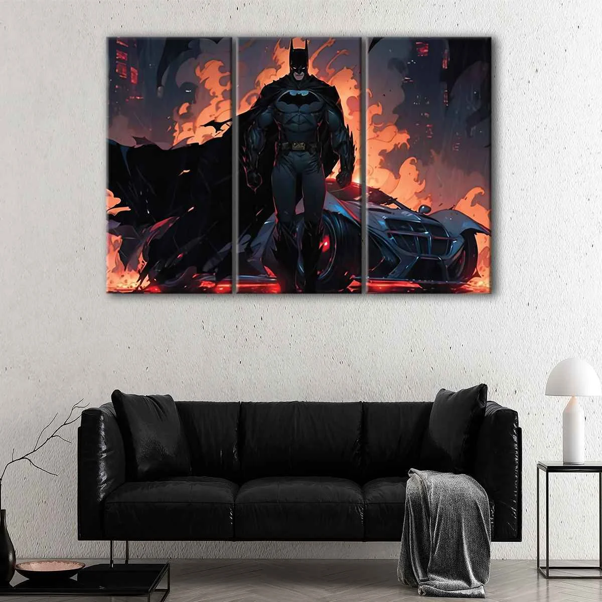 This superhero artwork makes a perfect birthday gift or anniversary gift for action movie lovers. Gifting this stunning Batman in fire canvas wall art will surely spread love in your surroundings. Available for sale at tourathy.com, offering a unique and lasting impression.