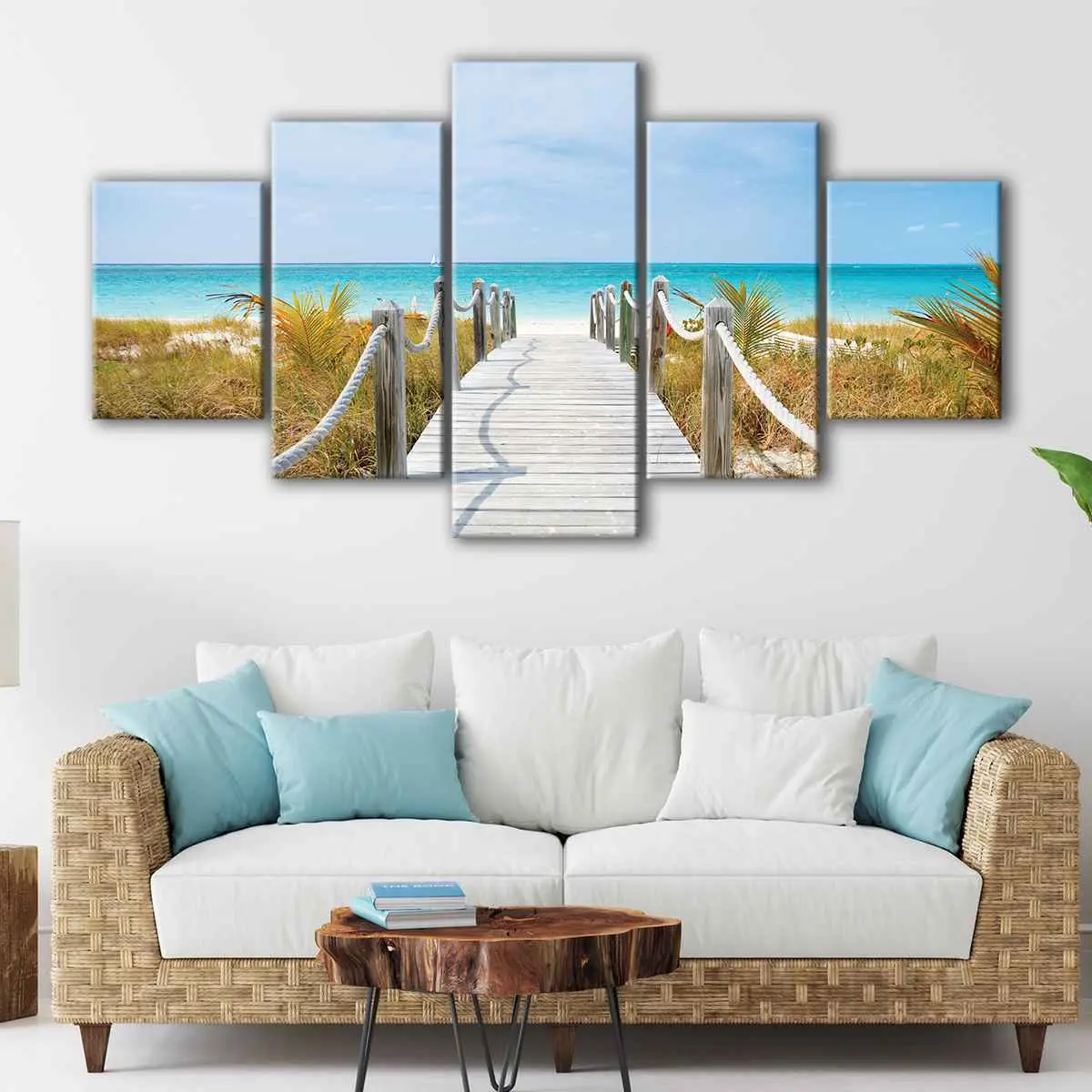 This beach wall art is available in multiple configurations: 1 panel, 3 panels, 5 panels. It comes in a variety of sizes, from small to oversized canvas print, ensuring it will fit perfectly in your living room, hallway, kids room, or dining room.
