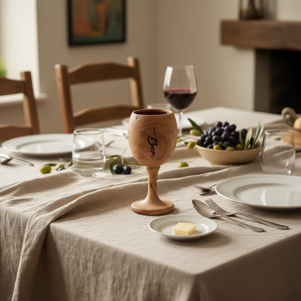 Ideal for both everyday use and special occasions, this olive wood goblet elevates your dining experience. Its versatile design makes it perfect for serving wine, water, or other beverages in style. The comfortable stem and balanced base provide a secure grip, while the smooth, beautifully finished interior ensures easy cleaning. It's an excellent choice for those who appreciate natural materials and timeless design in their kitchen and dining accessories.