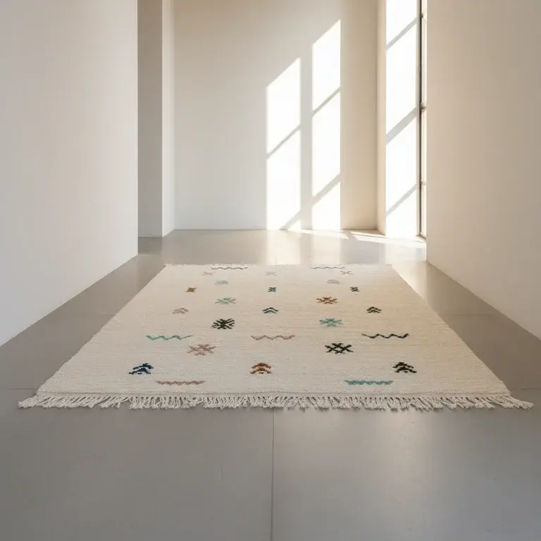 This beautiful Berber wool rug represents generations of traditional craftsmanship and cultural heritage. Handmade using time-honored techniques passed down through artisan communities, each rug tells a story of cultural significance and artistic expression. The natural wool fibers are carefully selected and processed to create a durable, high-quality textile that stands the test of time while maintaining its beautiful appearance and functional properties.