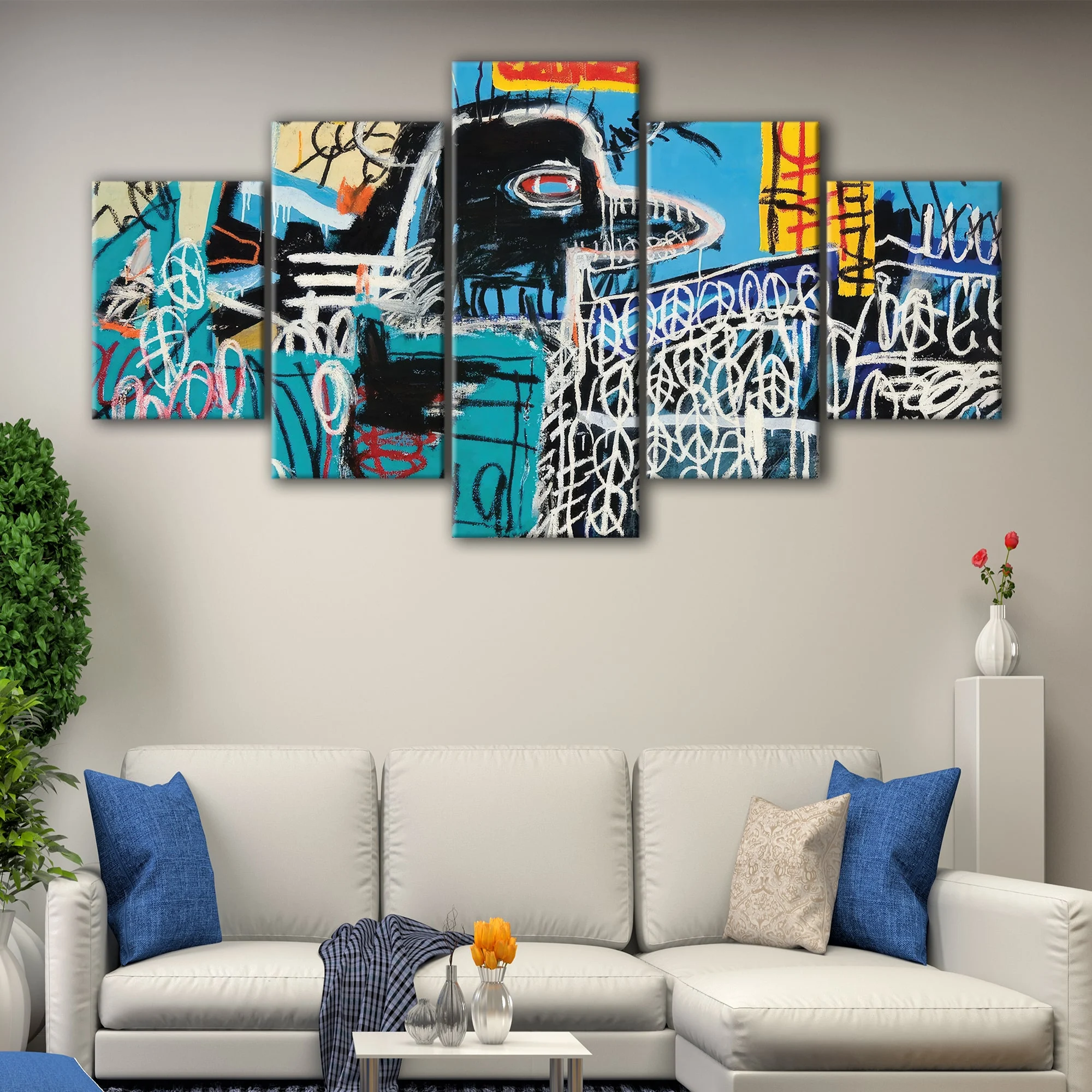This Jean Michel Basquiat-inspired bird on money artwork is available in multiple configurations, including 1, 3, or 5 panels, making it the perfect fit for your living room, hallway, or bedroom. Our versatile wall art is available in a range of sizes, from small to oversized canvas prints, ensuring you find the perfect piece to enhance your space.