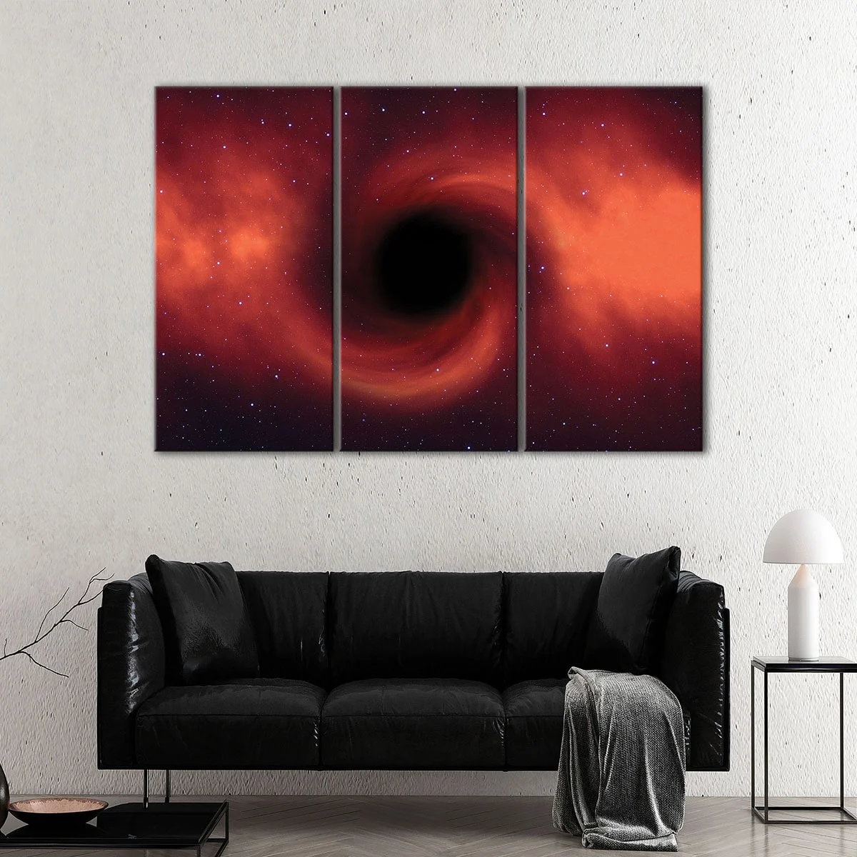 Our Black Hole wall art is available in various configurations to fit your unique style and decor. Choose from a range of sizes, including small to over-sized canvas prints, to find the perfect fit for your living room, hallway, kids room, or dining room.