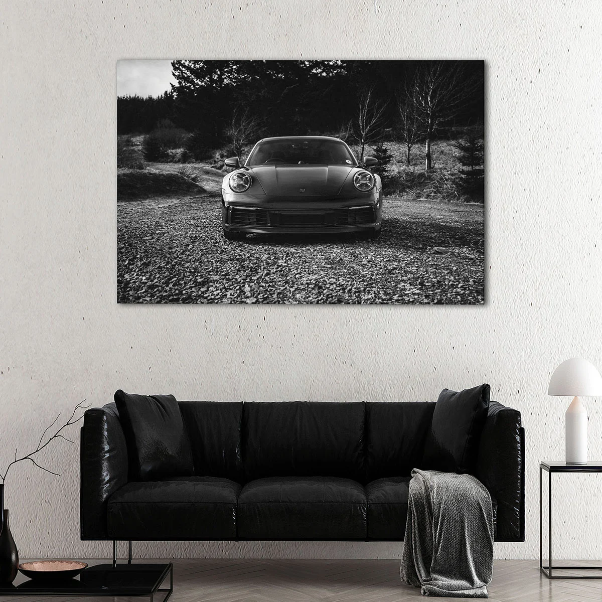 Black & White Porsche canvas art