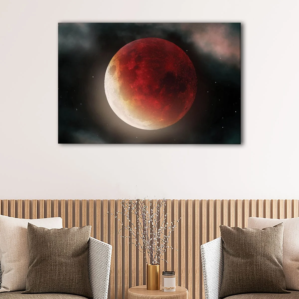 Our Blood Moon canvas art features premium poly-cotton canvas combined with pigment-archival inks, delivering high-definition prints with vivid colors that will captivate your senses. Available in a range of sizes, from small to oversized, our artwork is perfect for any room in your home, making it a wonderful addition to your living, dining, or bedroom spaces.