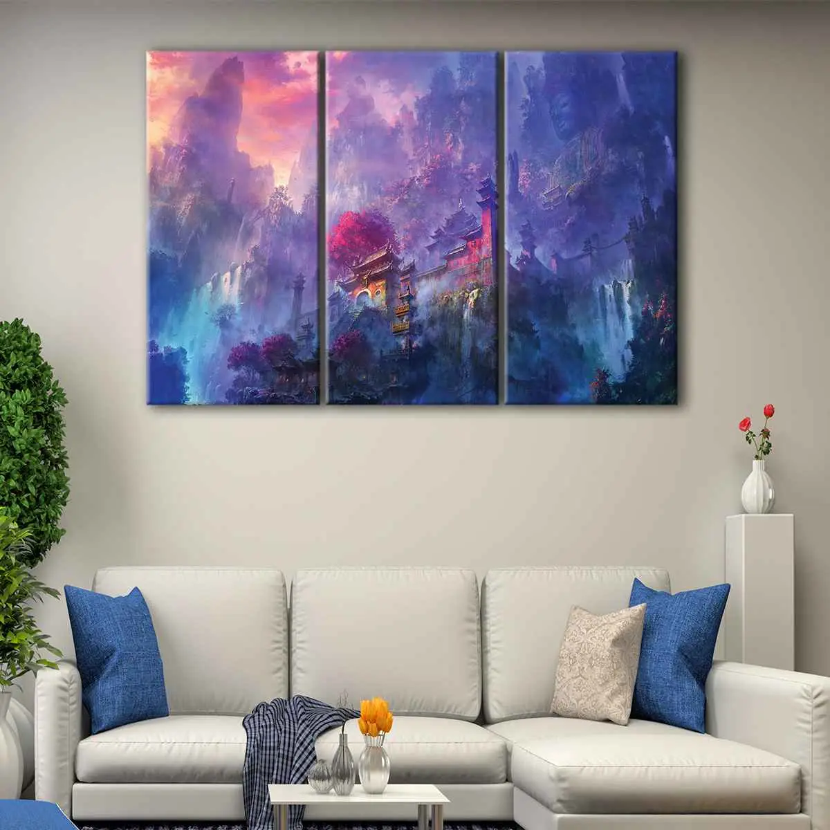 The Blue Temple canvas art is available in 1 panel, 3 panels, or 5 panels, ensuring a harmonious visual experience in your home. Get your piece today and add a touch of serenity to your space! This stunning artwork is available for sale at tourathy.com.