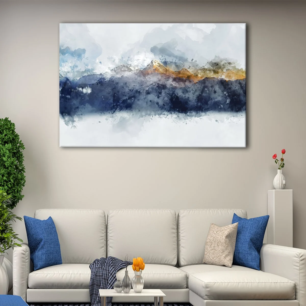 This watercolor mountain wall art is available in multiple sizes, from small to over-sized canvas print, to fit any room in your home, whether it's your living room, hallway, or bedroom. You can choose from 1 panel or 3 panels to create a unique piece of art that suits your style.