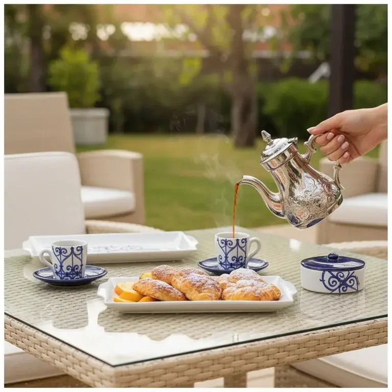 Transform your everyday meals into memorable occasions with this stunning dinnerware set. The beautiful blue wrought iron patterns add sophistication and cultural charm to your table setting, making every meal feel special. Perfect for family dinners, entertaining guests, or celebrating cultural traditions, this set brings joy and happiness to your dining experience. The authentic Tunisian design not only serves practical purposes but also serves as beautiful decorative pieces that reflect your appreciation for traditional craftsmanship and cultural heritage.