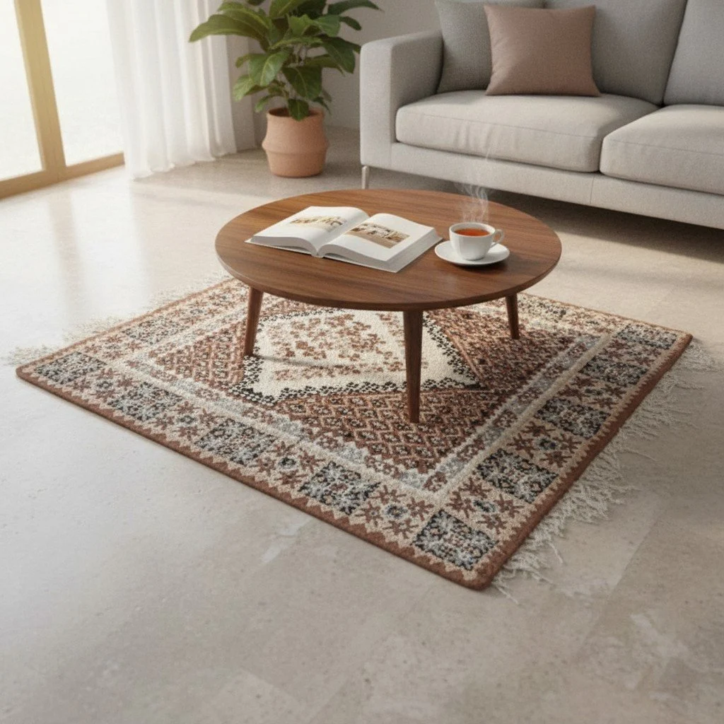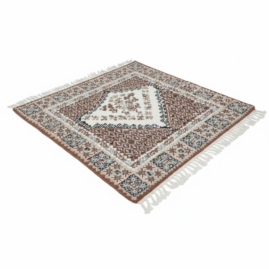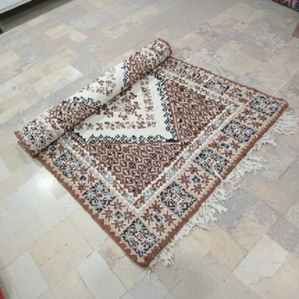 Crafted from genuine sheep wool, this carpet offers exceptional durability and a naturally soft feel. The wool fibers provide excellent insulation, making the rug warm in winter and cool in summer. The traditional weaving techniques used ensure a high-quality, resilient finish that is built to last, maintaining its beauty and texture through regular use in a busy living room.