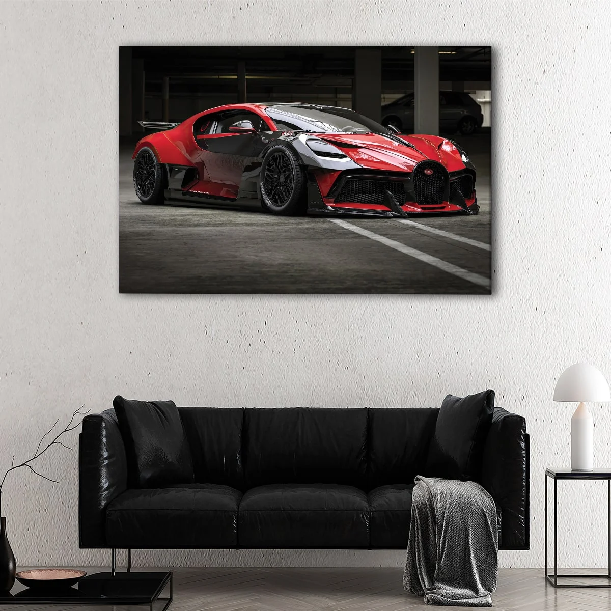 This Bugatti wall art is available in various options to suit your decorative needs: 1-panel, 3-panel, or 5-panel prints. It comes in a range of sizes, from small to oversized canvas prints, making it an ideal fit for any room in your home, including your living room, hallway, kids' room, or dining room.