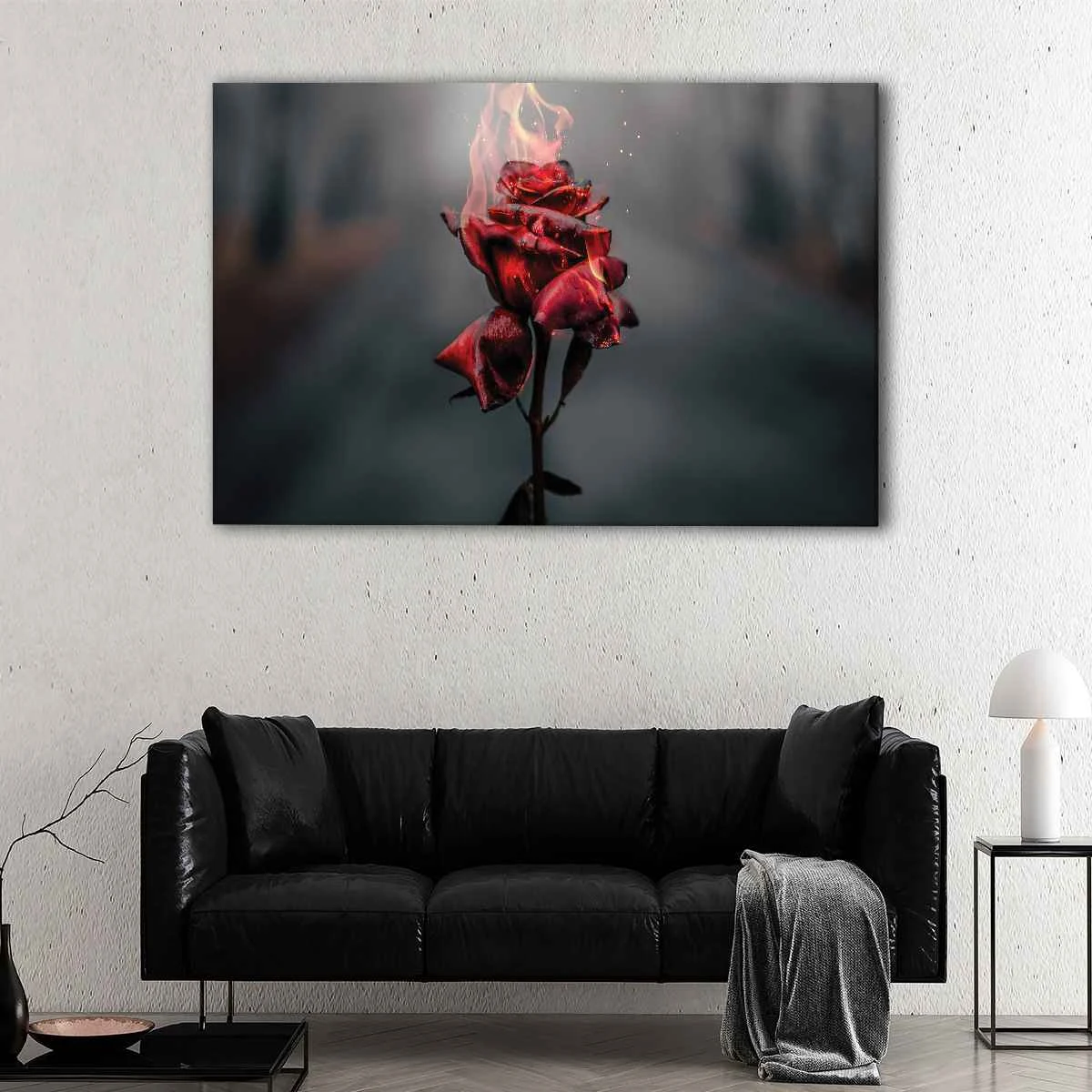 Our Burning Rose canvas art is a beautiful piece of wall decor that comes ready-to-hang, eliminating the need for extra framing. The canvas is carefully hand-stretched over 100% natural wood stretcher bars by our expert craftsman, ensuring a high-quality finish.