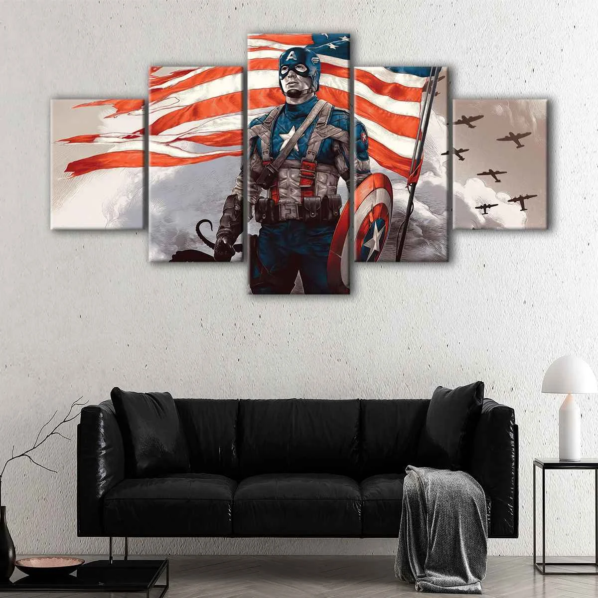 This superhero artwork makes a perfect birthday gift or anniversary gift for the Marvel fan in your life. You can also gift it to action movie lovers who will appreciate the vibrant colors and detailed print. Whether you're looking to add a touch of excitement to your living room, hallway, kids room, or dining room, this Captain America Painting canvas wall art is sure to impress.