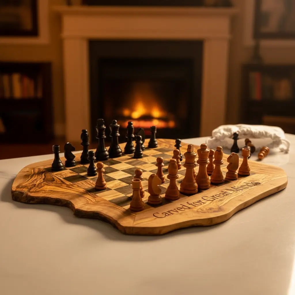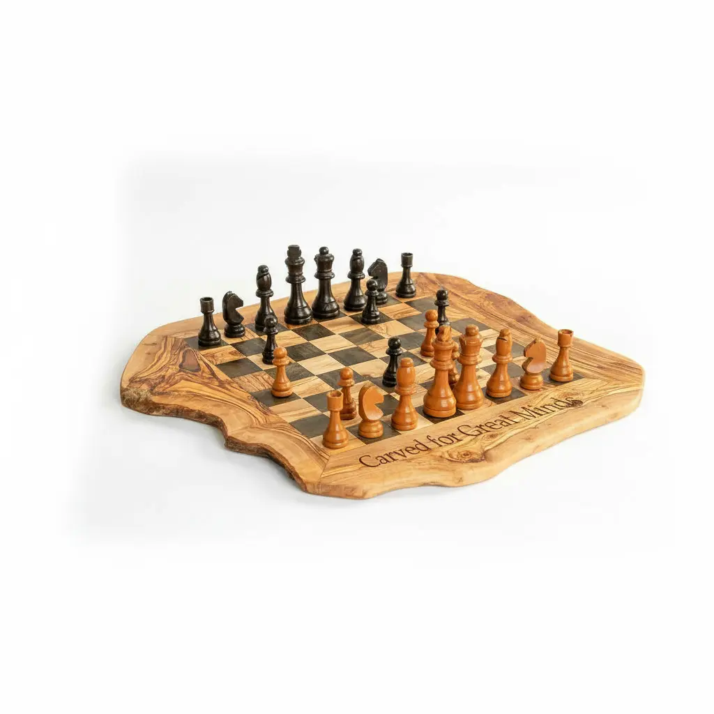 Discover our exclusive Carved for Great Minds Olive Wood Chess Set, a masterpiece of traditional Tunisian craftsmanship. Each chess piece is meticulously hand-carved from solid olive wood, showcasing the natural grain and unique character of this beautiful material. The rustic artisan chessboard complements the handcrafted pieces, creating a cohesive set that celebrates the art of woodworking. Available in multiple sizes to suit your preferences, this chess set makes an exceptional addition to any game room or living space.