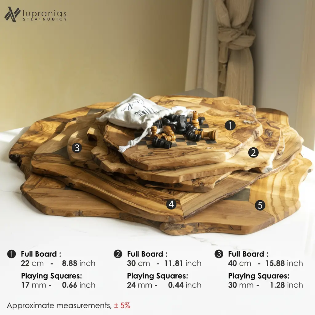 Experience the beauty of irregular finishes that make each chess set truly one-of-a-kind. The natural variations in the olive wood ensure that no two pieces are exactly alike, adding to the set's authentic charm. The hand-carved details on each chess piece demonstrate the skill and dedication of Tunisian artisans who have perfected their craft over generations. This chess set not only serves as a functional game but also as a work of art that reflects the rich cultural heritage of olive wood craftsmanship.