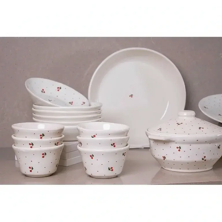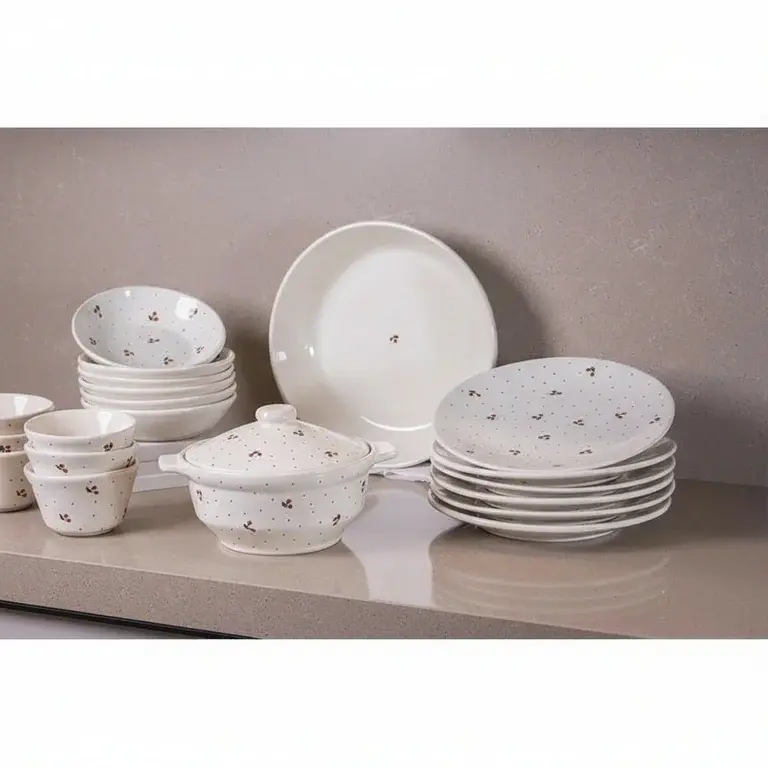 Transform your dining table with the exquisite Cerise 21-Piece Dinnerware Set from Ceramica Plus. This comprehensive collection is designed to serve four people in style, providing all the essential pieces for a complete and elegant table setting. Crafted for both everyday use and special occasions, it combines functionality with timeless design.