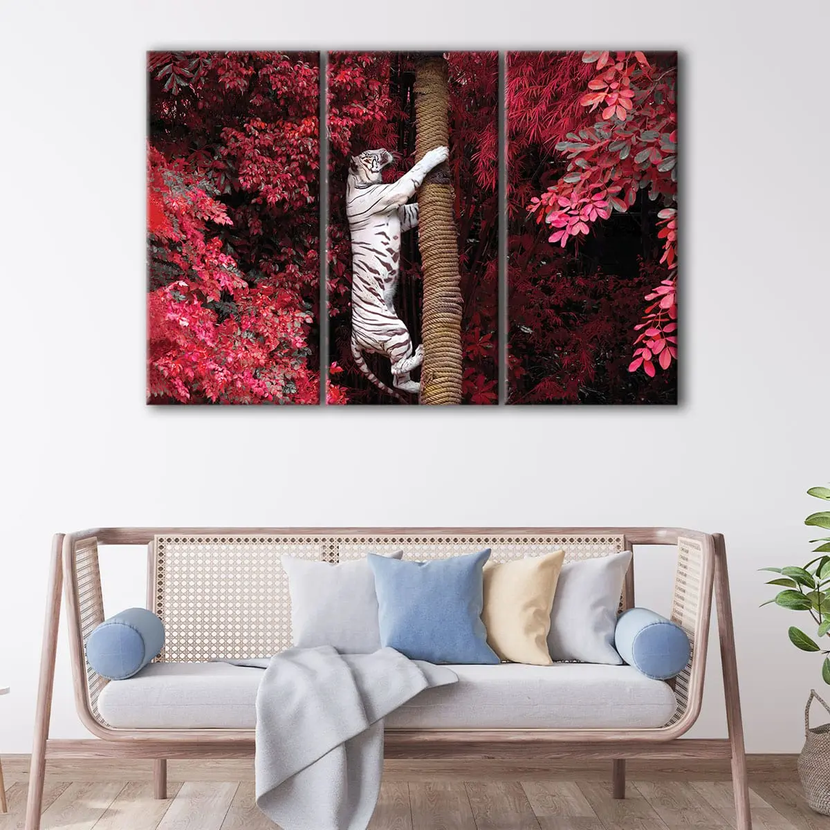 This striking tiger in pink forest artwork makes an ideal gift for birthdays, anniversaries, or for those who love animals. Give the gift of love and beauty to your surroundings by presenting this stunning tiger canvas wall art. Buy this unique piece available for sale at tourathy.com and spread love and elegance in your home.