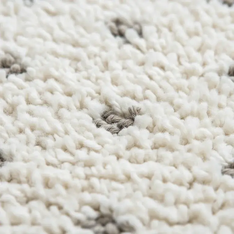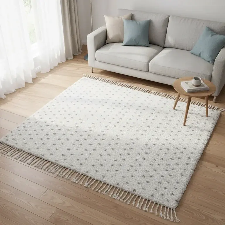 This Berber rug showcases intricate polka dot motifs that create a visually appealing texture, complementing various interior styles. The white and snow color palette offers a neutral yet striking look, making it easy to match with existing furniture and accessories. Crafted with attention to detail, the rug is soft to the touch yet resilient, capable of withstanding daily wear and tear. Its lightweight design allows for easy placement and rearrangement, while the non-slip backing ensures safety on smooth floors.