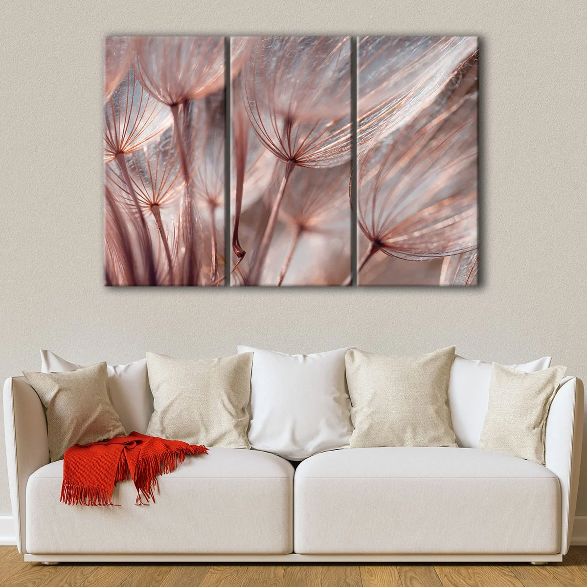 This beautiful dandelion wall art is available in a variety of options: 1 panel, 3 panels, or 5 panels, in various sizes from small to oversized. Perfect for adorning your living room, bedroom, or dining room.