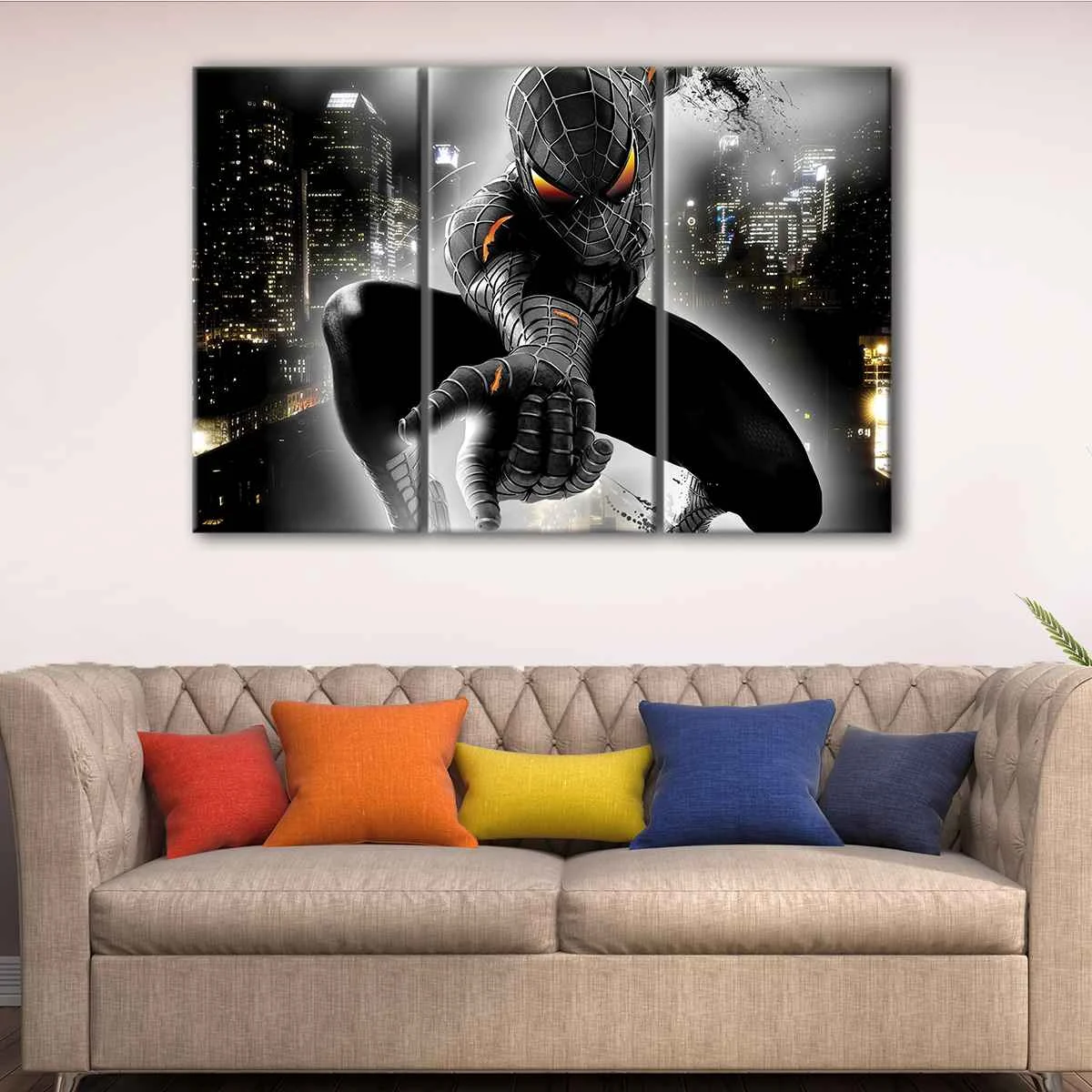 Available in various sizes, from small to over-sized canvas print, this black Spider Man wall art is the perfect addition to any room, including the living room, hallway, kids' room, or dining room. Choose from a range of options, including 1 panel canvas wrap and 3 panels canvas wrap, to find the perfect fit for your home decor.