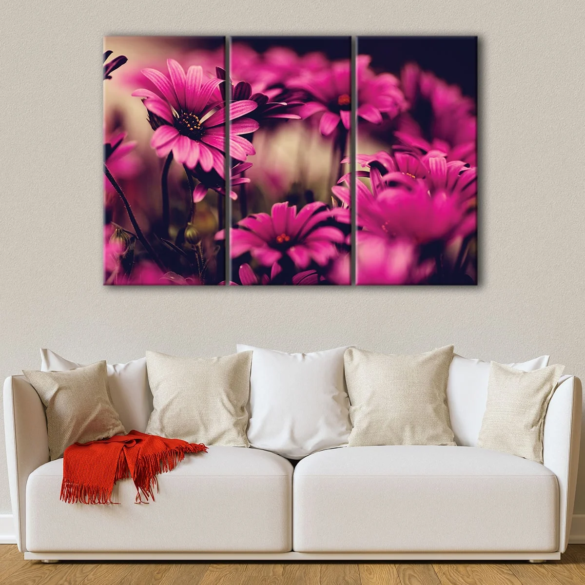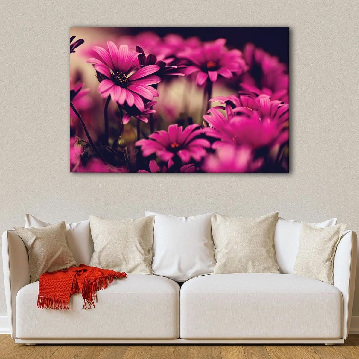 Our beautiful deep pink flowers canvas art is carefully crafted to provide a stunning piece of wall decor for your home. This gorgeous artwork comes ready-to-hang with metal saw-tooth hangers on the back and is expertly hand-stretched over 100% natural wood stretcher bars.