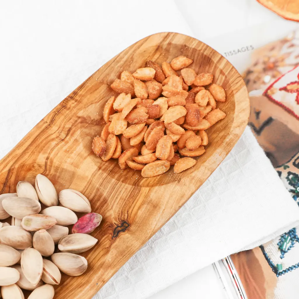 This Divided Olive Wood Serving Platter from Artisraw combines rustic charm with practical functionality. Crafted from beautiful olive wood, it features multiple compartments that allow for organized displays of cheese, charcuterie, fruits, and appetizers. The unique natural grain patterns and warm tones create an eye-catching centerpiece that elevates any table setting, making it perfect for entertaining guests or special family gatherings.