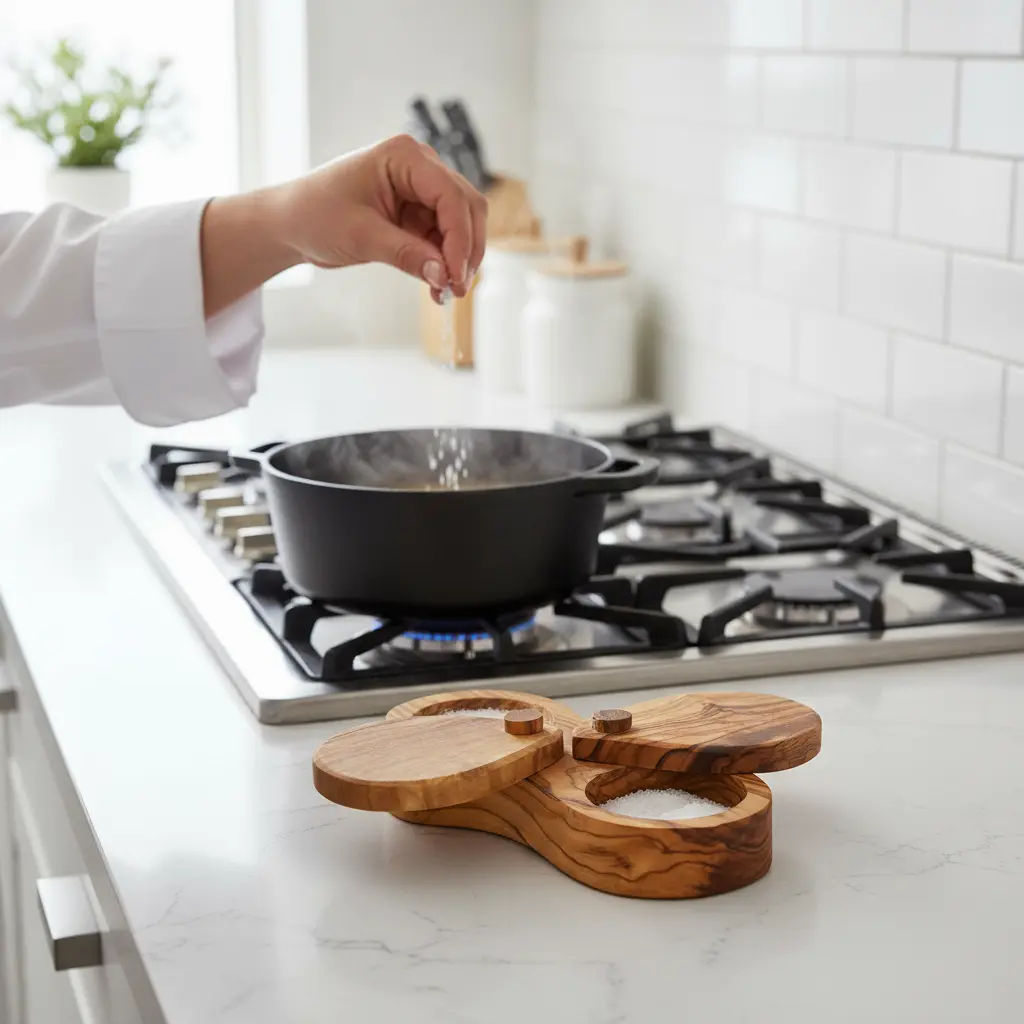 This salt cellar offers exceptional practicality for your kitchen workspace. The dual compartments allow you to separate coarse sea salt from fine table salt, or keep different spice blends organized and within reach. The secure lid helps protect your seasonings from moisture and contaminants, ensuring they remain dry and free-flowing. The compact design makes it perfect for countertop placement near your cooking area, providing easy access while adding a touch of artisanal charm to your kitchen decor.