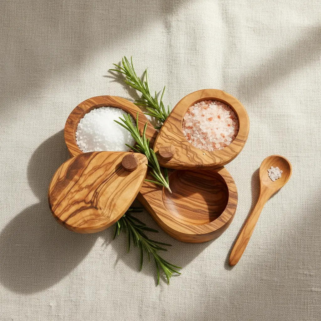 Each salt cellar is meticulously handcrafted by skilled artisans who preserve the natural character of the olive wood. The material is known for its durability and natural antimicrobial properties, making it both hygienic and long-lasting. To maintain its beautiful appearance, simply wipe with a damp cloth and occasional application of food-safe mineral oil. This functional yet decorative piece makes an excellent gift for home cooks and culinary enthusiasts who appreciate handmade quality and natural materials in their kitchen tools.