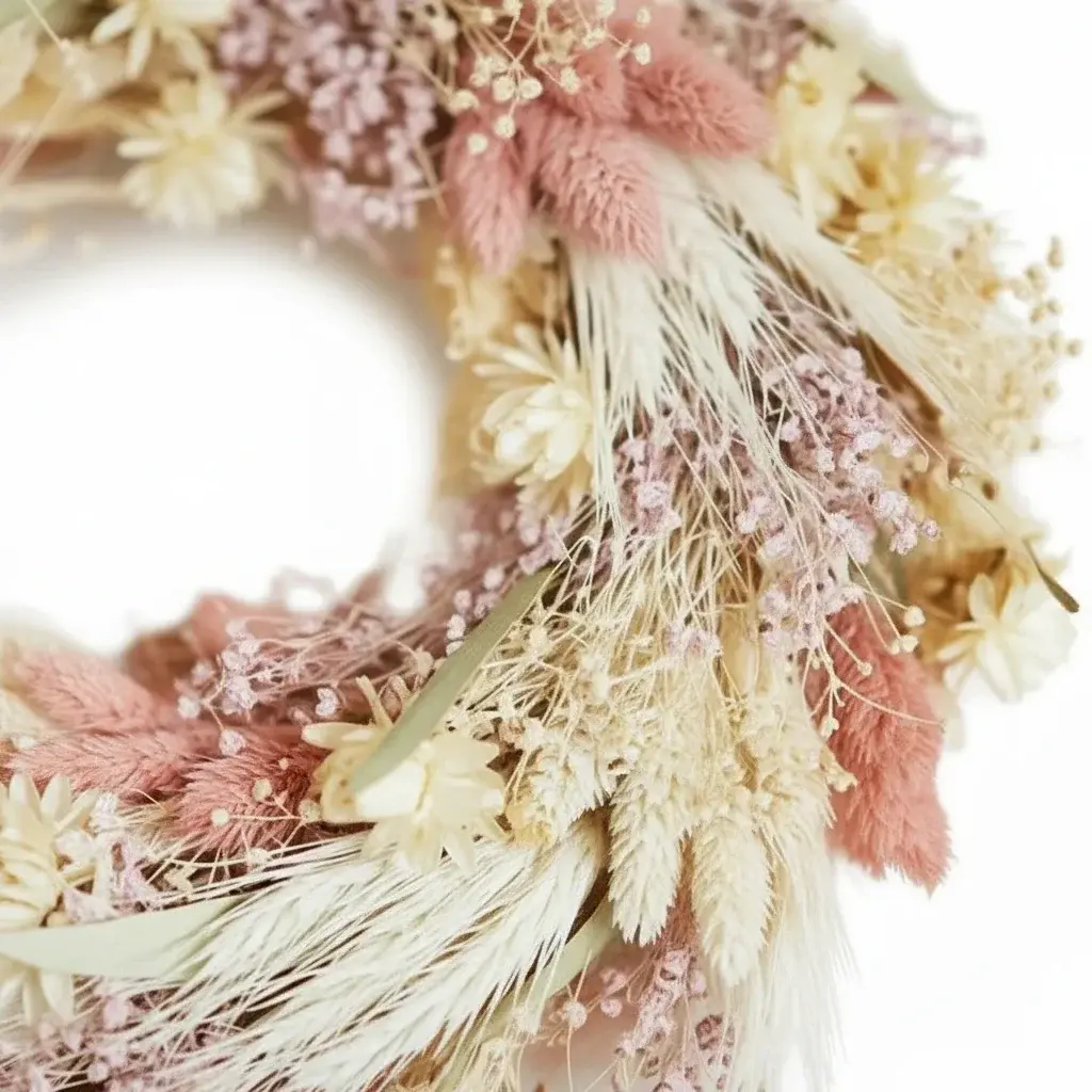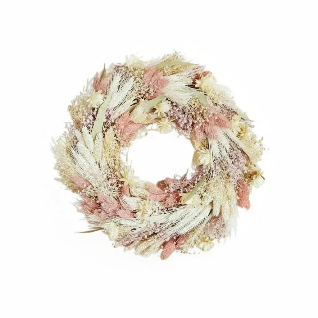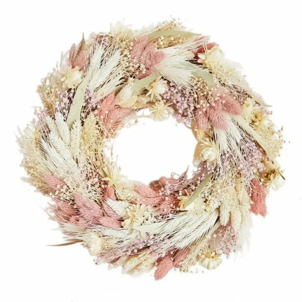 This versatile dried flower wreath serves multiple decorative purposes throughout your home. Hang it on your front door to welcome guests with natural elegance, display it on your living room wall as a focal point, or use it as a beautiful table centerpiece for special occasions. Available in two convenient sizes - 25cm and 35cm - to suit different spaces and preferences. The wreath's neutral color palette and natural texture complement various interior design styles from rustic to modern minimalist.