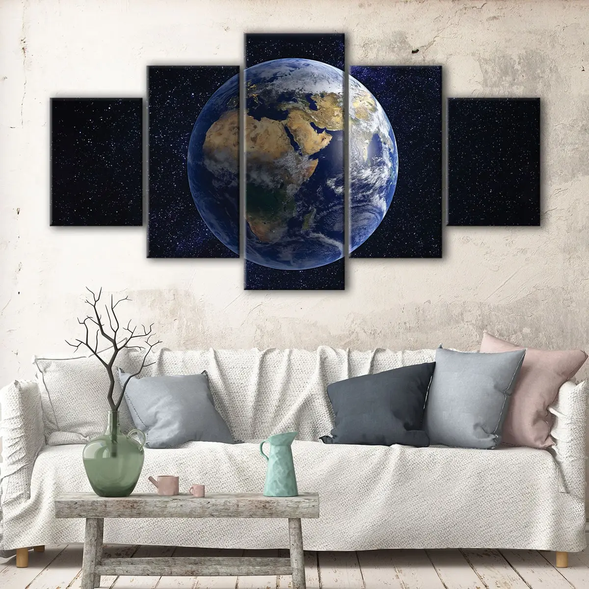 Available in 1 panel, 3 panels, or 5 panels, our Earth and stars wall art is the perfect addition to any room. Choose from a range of sizes, from small to oversized, to suit your unique decor. Whether it's for your living room, hallway, kids' room, or dining room, this stunning piece is sure to be a conversation starter.