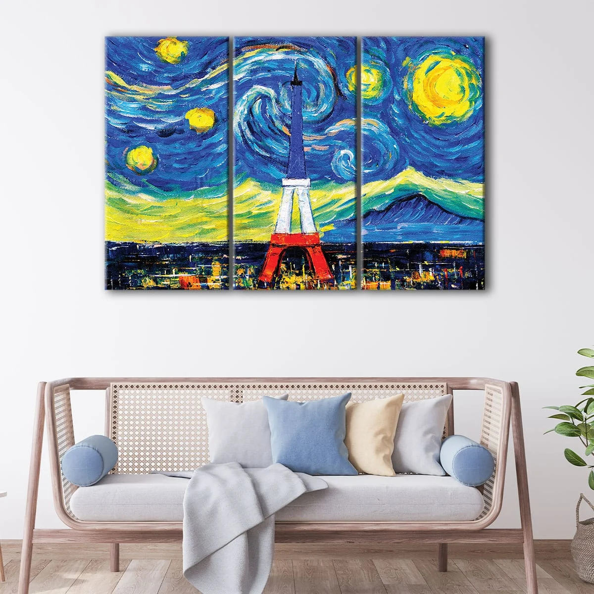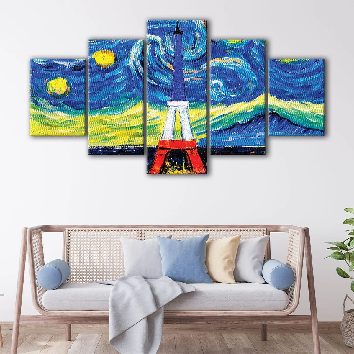 This Eiffel tower Van Gogh style wall art is available in multiple options: 1 panel, 3 panels, 5 panels, and floating frame canvas. It also comes in various sizes, from small to extra-large canvas prints, making it perfect for your living room, hallway, or kids' room.