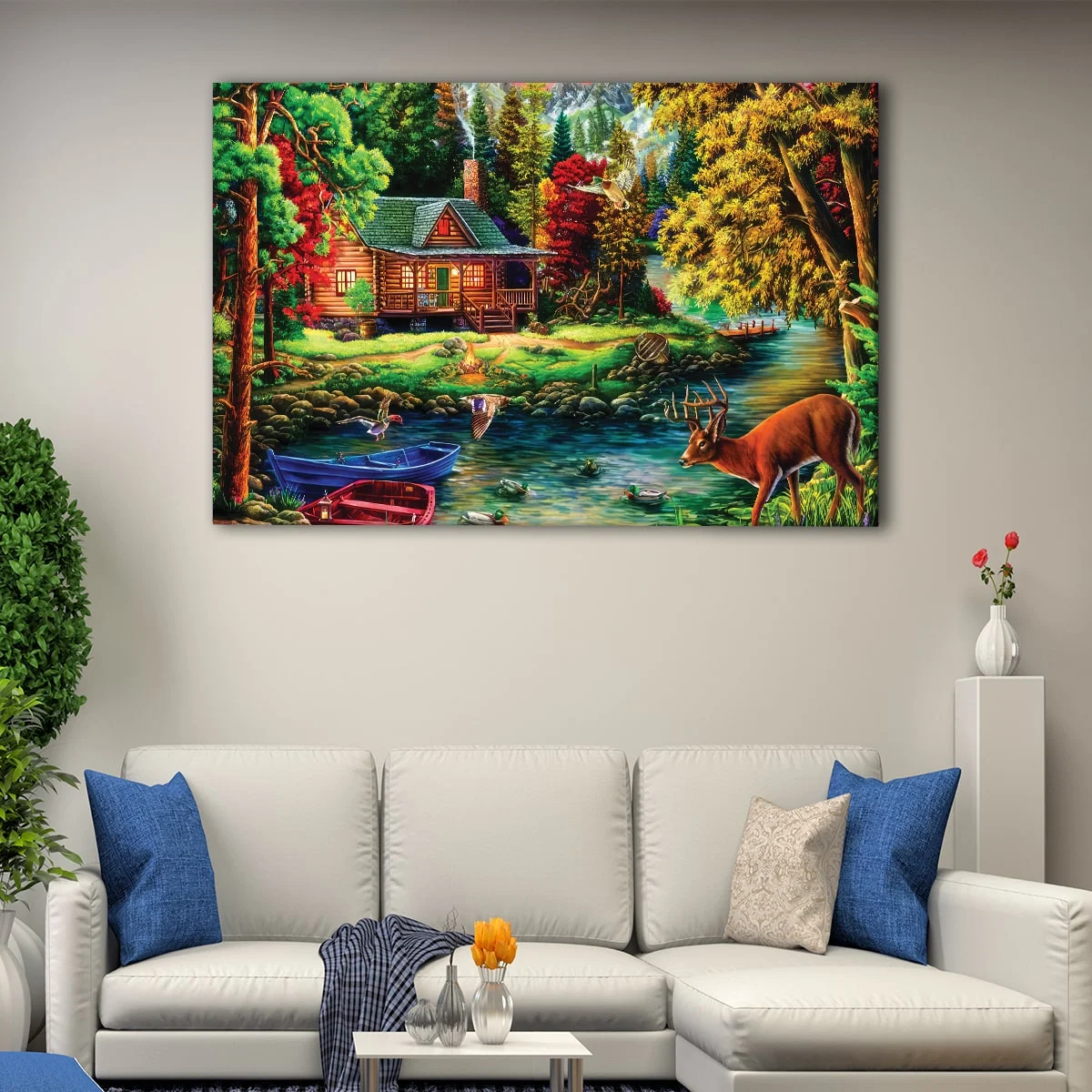 This forest artwork makes a perfect birthday gift or anniversary gift. You can also gift it to nature lovers. Spread love in your surroundings by offering this stunning enchanted forest lake canvas wall art!