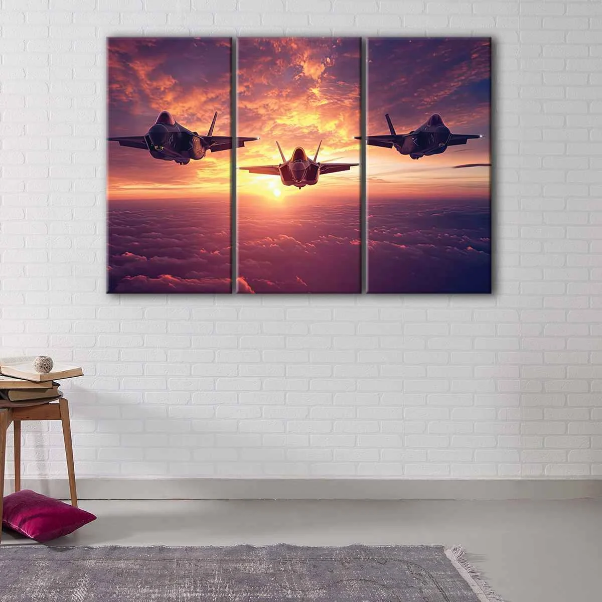 Available in 1-panel, 3-panel, or 5-panel options in a variety of sizes, this F22 Raptor wall art will fit perfectly in your living room, hallway, kids room, or dining room.
