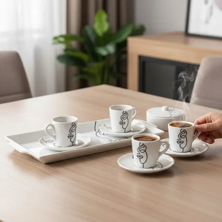 Transform your morning coffee into an artistic ritual. The ceramic construction ensures durability while maintaining heat perfectly. The rectangular tray provides ample space for arranging your coffee service, while the lidded candy dish keeps treats fresh and accessible. Create beautiful tablescapes that impress your guests and elevate your home decor.