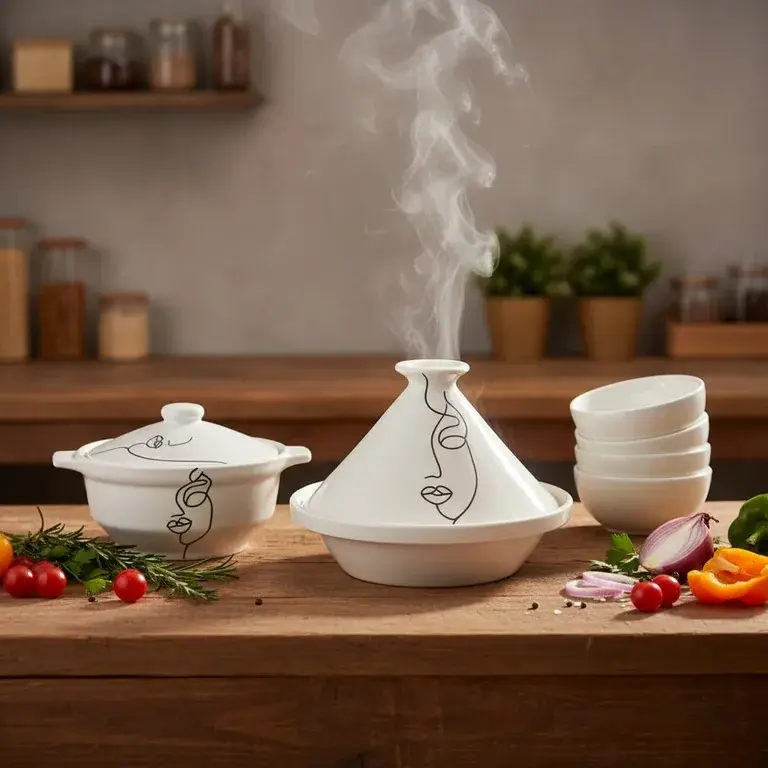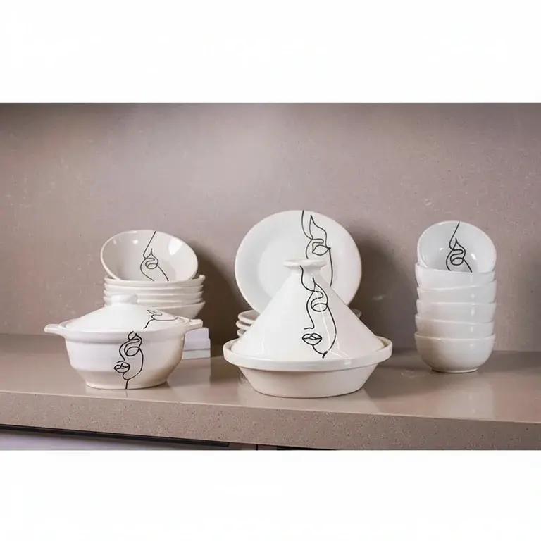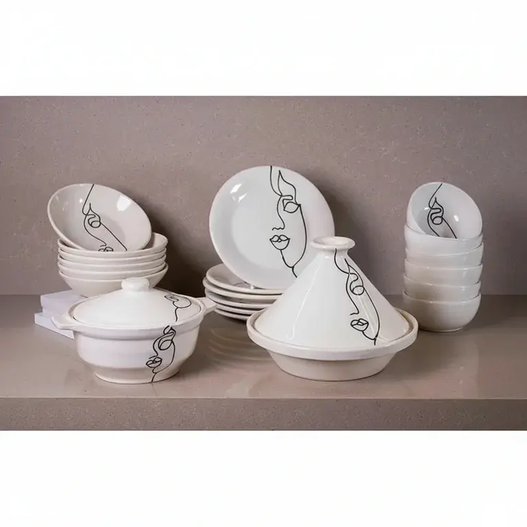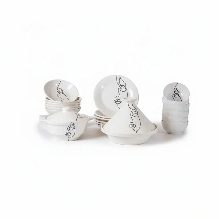 This comprehensive set includes everything you need for elegant dining and entertaining. You will receive 6 versatile bowls, 6 dinner plates, 6 soup plates, 1 elegant soup tureen, 1 traditional tagine, and 2 matching lids. Each item features the distinctive Face Art motif, creating a cohesive and artistic tablescape that will impress your guests and elevate every dining occasion.