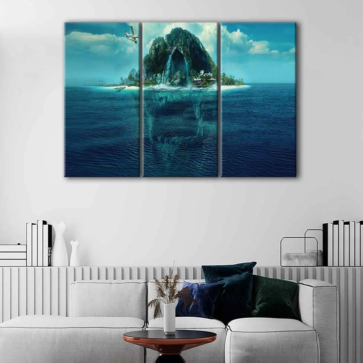 This Fantasy Island wall art is available in various configurations to fit your style, including 1-panel, 3-panel, and 5-panel setups, as well as a range of sizes to suit any room in your home - from small to oversized canvas prints.