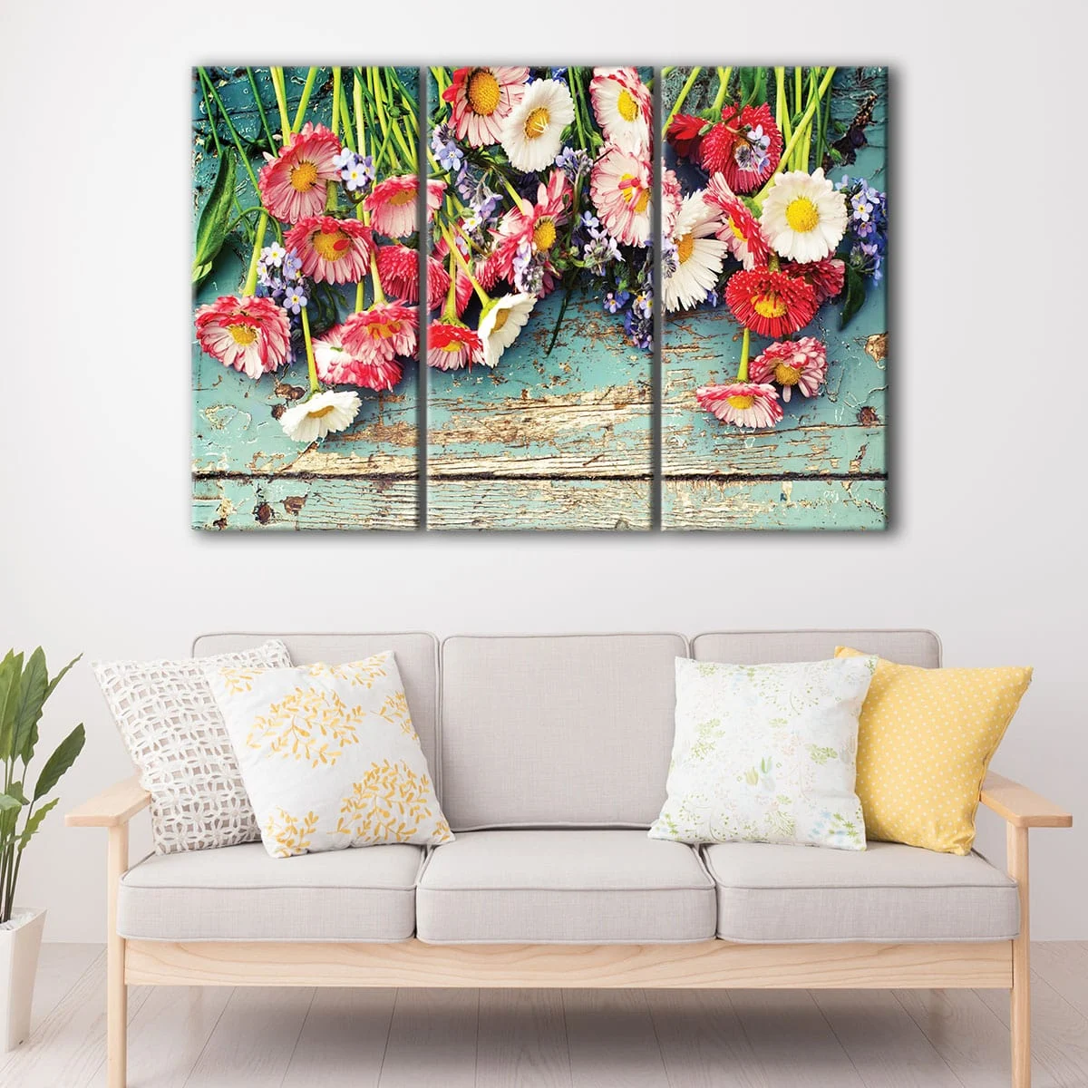 This vibrant and colorful flowers wall art is available in multiple styles to suit your home decor: a single panel, 3-panel, or 5-panel arrangement. To accommodate various tastes, we offer a range of sizes - from compact to expansive canvas prints - ensuring that this stunning artwork will perfectly complement your living room, hallway, kids' room, or dining area.