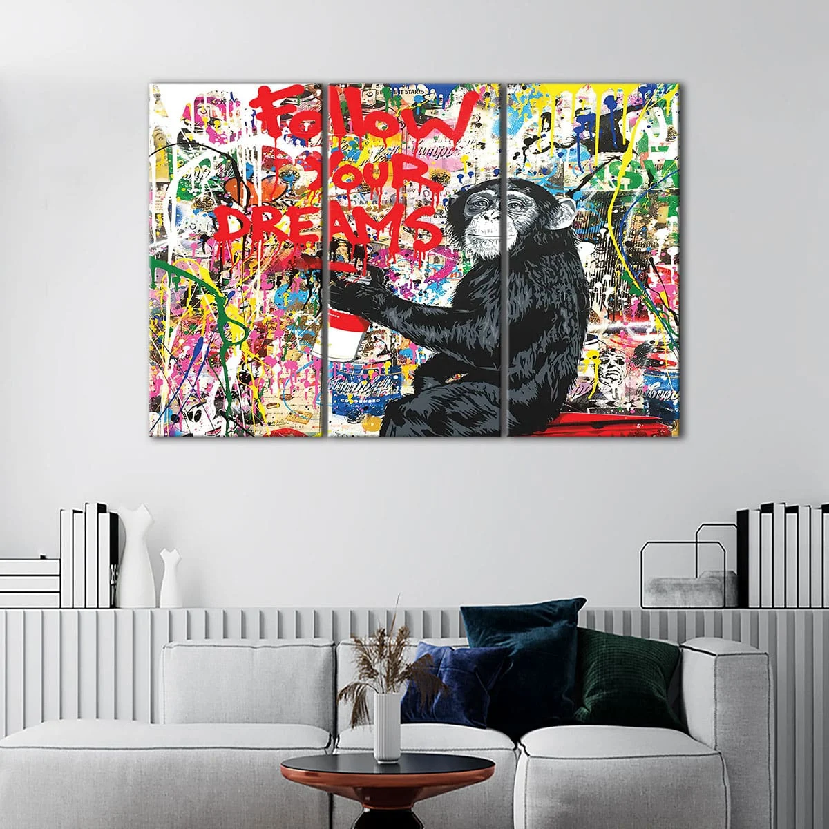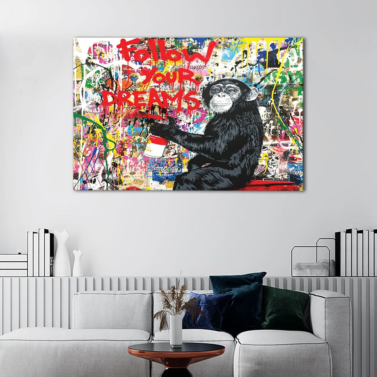 Make it a special gift by pairing it with a personal message, making it the perfect birthday gift, anniversary gift, or present for the street art and graffiti lovers in your life. Spread love and positivity with this stunning colorful Follow Your Dreams Monkey Canvas Art.