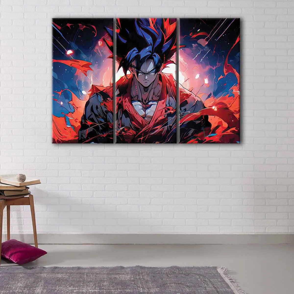 The Furious Goku canvas wall art is available in various sizes, from small to oversized, to fit perfectly in your living room, hallway, kids room, or dining room. We offer 1 panel canvas wrap and 3 panels canvas as well. So, it's easy to find the perfect size and style to match your home decor.