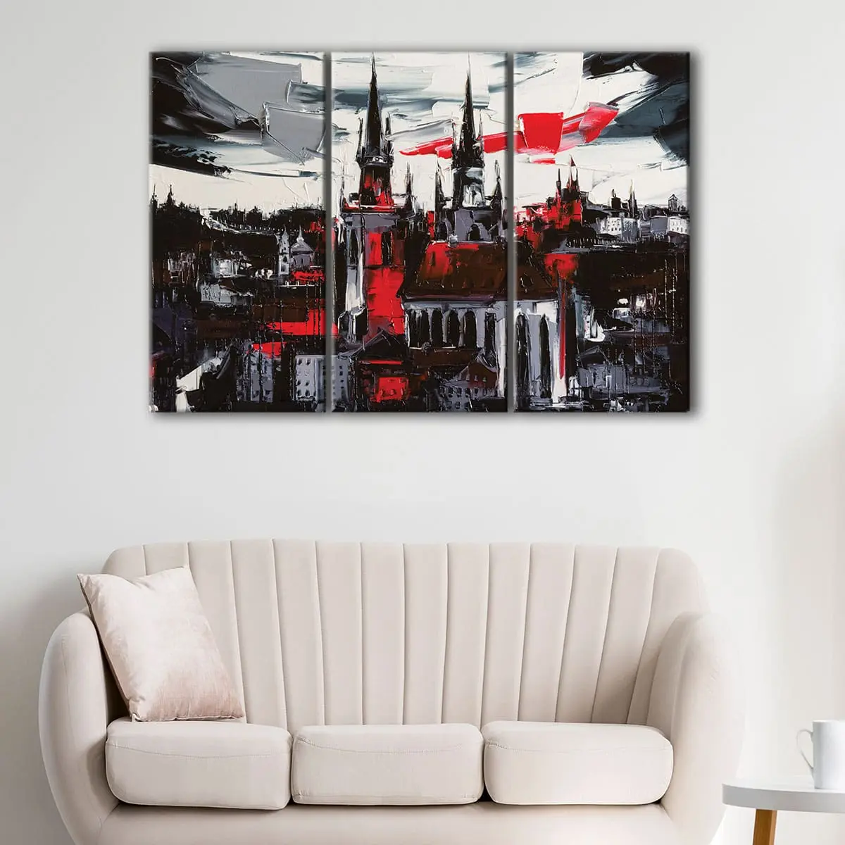 This abstract Prague wall art is available in various configurations, including 1 panel, 3 panels, and multiple sizes to suit any room. Elevate your living room, hallway, kids room, or dining room with this stunning piece of art, perfect for any interior design.