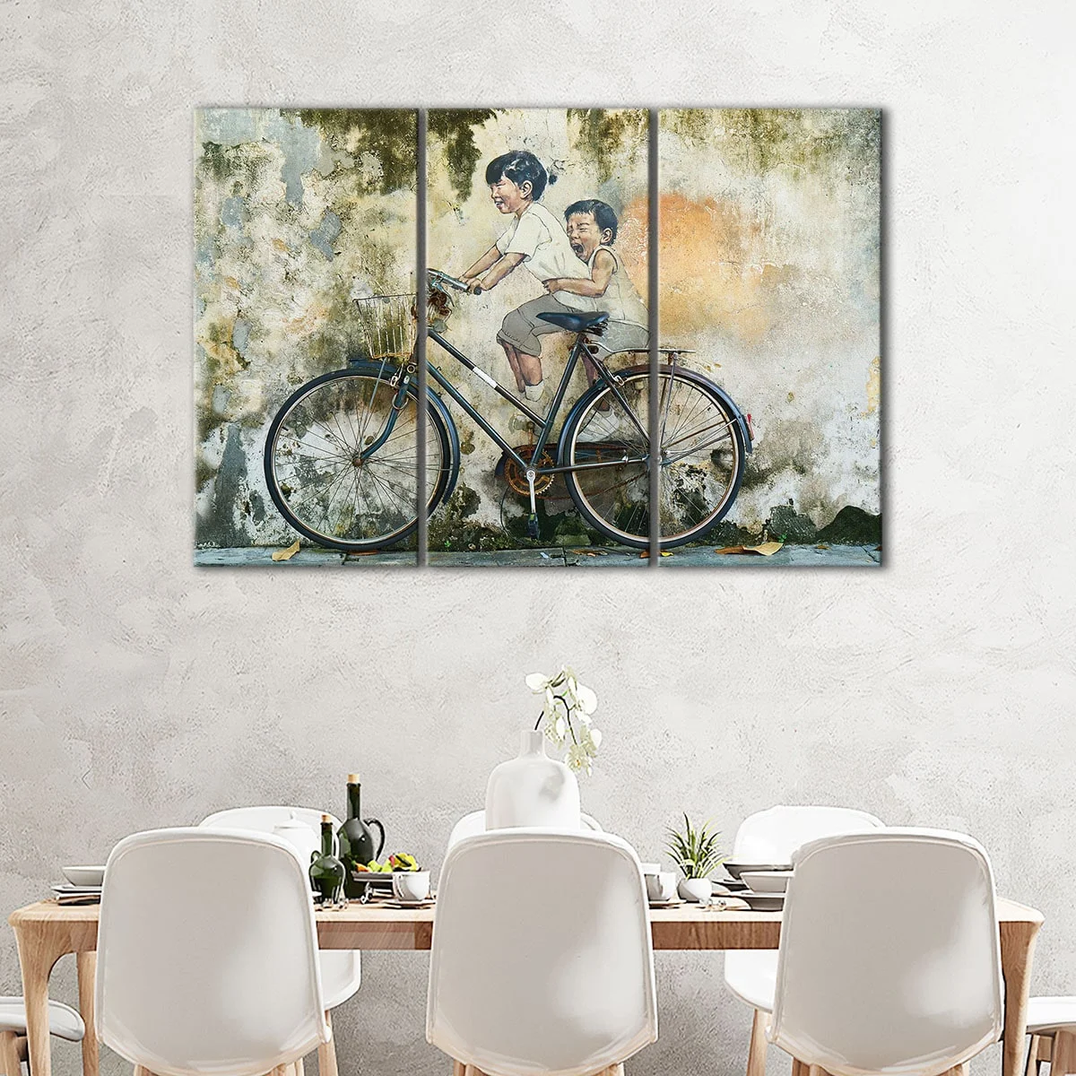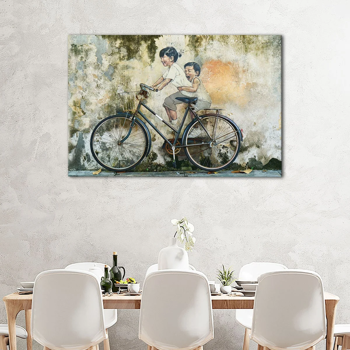 Our canvas art combines pigment-archival inks to produce bright, long-lasting colors that will remain vivid for over 100 years. Its durable materials ensure that your graffiti bicycle canvas art will be a stunning addition to any room in your home, including your living room, hallway, kids room, or dining room.