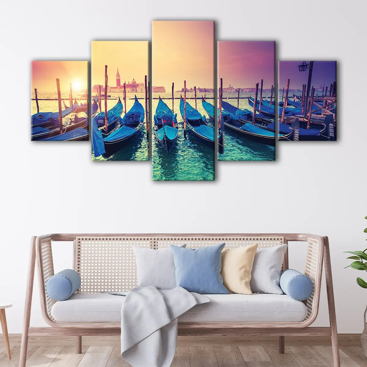 This Venice grand canale sunrise wall art is available in 1 panel, 3 panels, or 5 panels to fit your desired aesthetic. Choose from a range of sizes, from small to oversized canvas prints, to perfectly complement your living room, hallway, kids' room, or dining room.