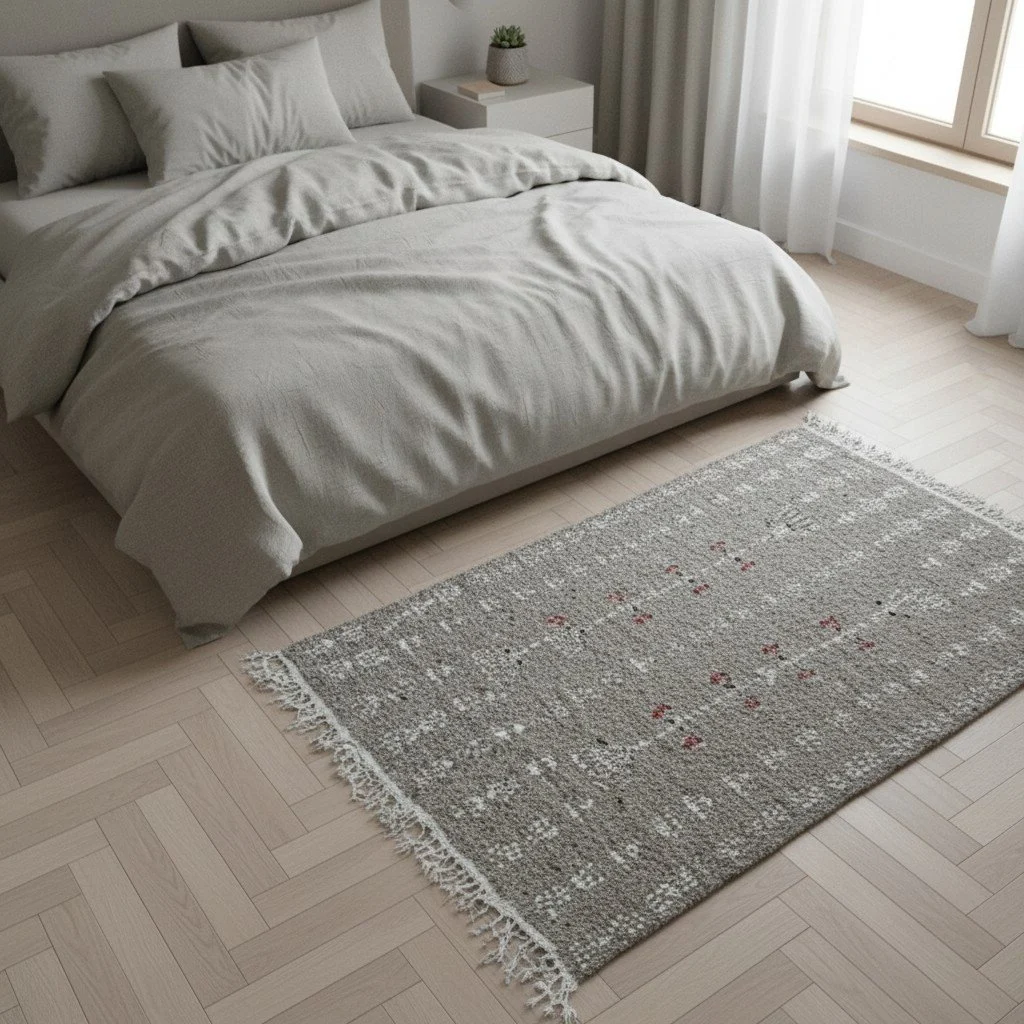 Discover the Gray Camel Wool Bedside Carpet, a beautifully crafted rug designed to add comfort and elegance to your bedroom. Made from high-quality camel wool, this carpet features a soft, plush texture that feels luxurious underfoot. Its neutral gray color complements a wide range of interior styles, making it a versatile choice for any bedroom decor. Measuring 220 x 120 cm, it is perfectly sized for placement in front of a bed, providing a warm and inviting surface to step onto each morning.