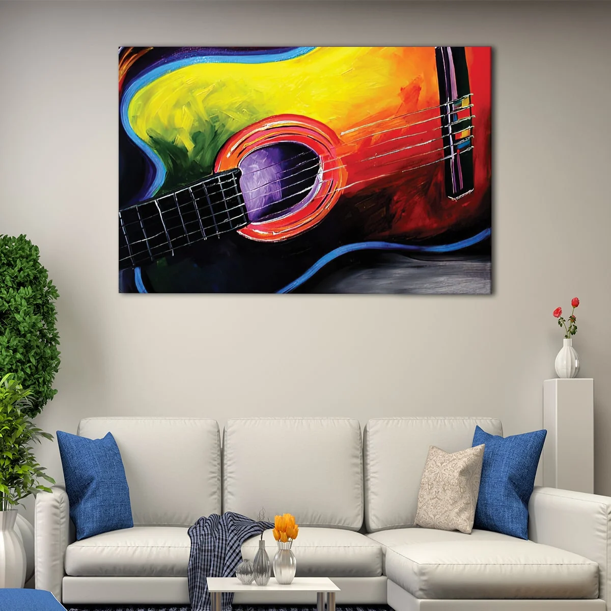 Our guitar giclee wall art is a versatile piece that comes in a wide range of sizes, from small to oversized canvas prints, making it perfect for any room in your house.