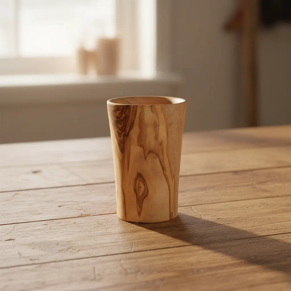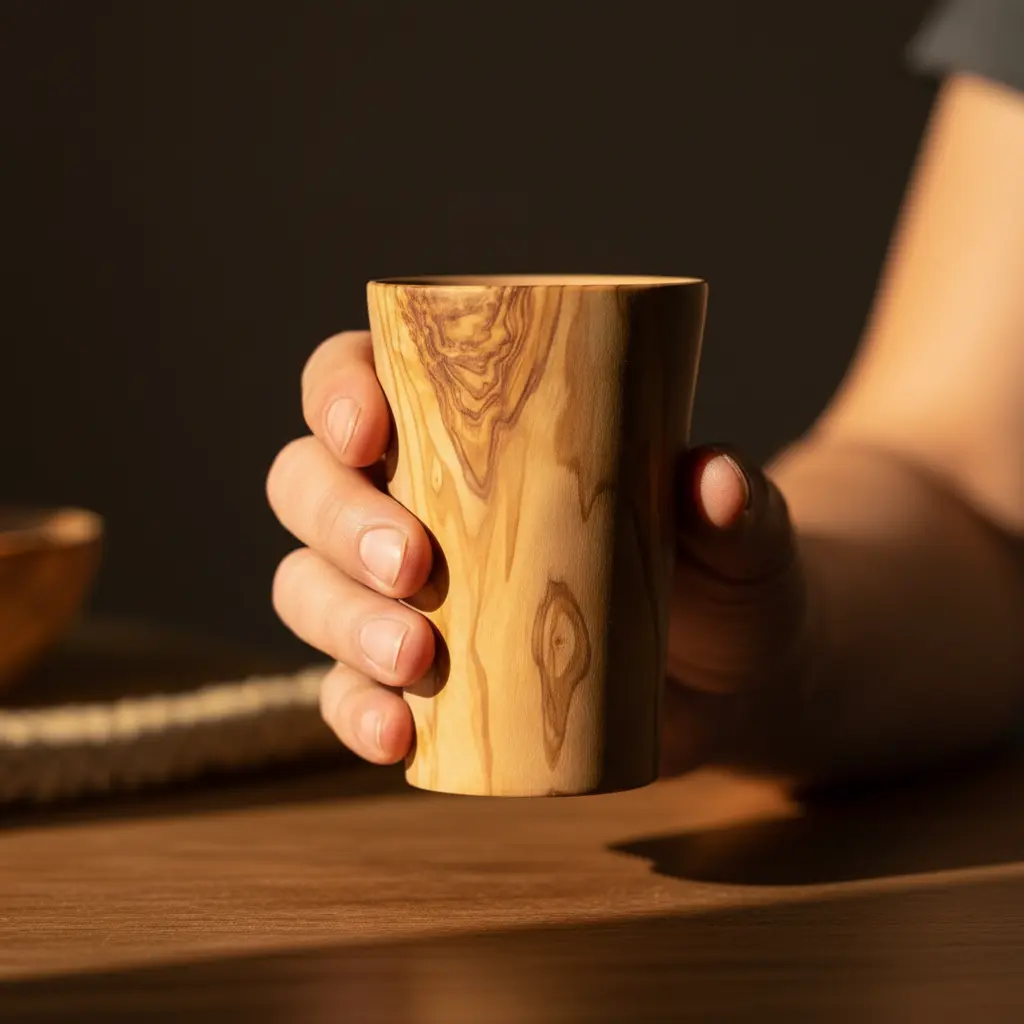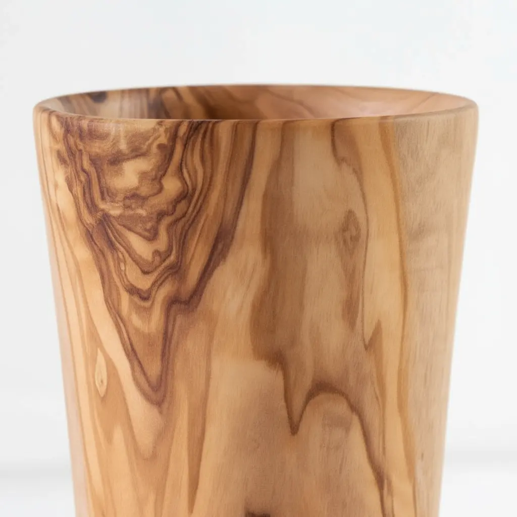 This olive wood cup combines durability with natural antibacterial properties, making it both practical and hygienic for daily use. The wood is carefully finished with food-safe oil that enhances its natural beauty while providing protection. The cup is designed to withstand regular use while maintaining its elegant appearance. Its sturdy construction ensures it will remain a cherished item in your home for years to come.